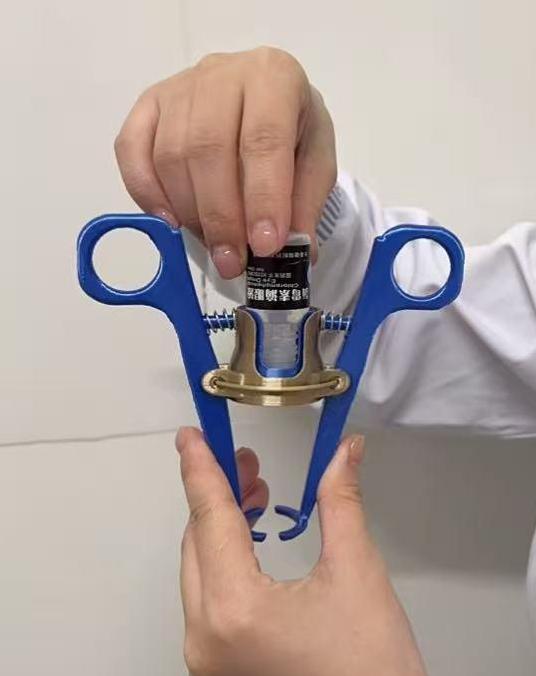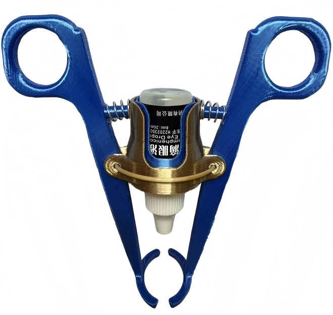 项目概要:眼睛是人体的视觉器官,当眼睛出现损伤或出现不健康状况(干涩、红肿等)时,需要对其施药进行治疗改善,常用的治疗方式是滴药,即使用滴眼器将药液滴入眼皮内的眼球上,以充分滋润眼球。 常用的滴眼器通常为软塑料滴瓶,通过挤压瓶身即可将药水滴入眼睛内,但此方式操作容易因手部晃动而无法准确滴入眼睛内,导致部分药液浪费,因此,现有改进型滴眼器采用筒状结构并固定滴瓶,即筒状结构压在眼部以定位眼球位置,然后挤压滴瓶将药液准确滴入眼睛内。 本创新项目在多个方面展现了显著的创新性。首先,在结构设计上,通过在滴药瓶的侧壁上对称转动设置两个开眼臂,并结合压臂、拨臂、复位弹簧以及拨板的配合使用,形成了一种独特的眼皮撑开机制。这一设计突破了传统滴眼器依赖患者自主控制眼皮的局限,实现了滴眼过程中的自动化与精确化。 其次,在功能实现上,该滴眼器巧妙地利用了弹性气泵与增压管的结构,通过按压弹性气泵产生气压差,将药液以更精准、更快速的方式滴入眼睛。这一设计不仅提高了滴药的准确性和效率,同时也减轻了患者在滴药过程中的操作难度和不适。 此外,该滴眼器在用户体验方面也进行了创新。通过开眼臂的自动撑开眼皮功能,有效避免了患者在滴药过程中的眨眼干扰,从而提高了滴药的舒适度和成功率。 同时,此创新激发了护士创新思维的能力,提高了工作效率,增强了职业价值感。提升护理质量,促进护理创新文化,增强患者口碑。提高医疗竞争力,推动学科发展,磁性护理服务,提高患者满意度和信赖感,也推动了相关产业的发展,增加了医疗科技的投入,降低了医疗成本。 操作方法:本滴眼器,包括滴药瓶,所述滴药瓶的侧壁上对称转动设置有两个开眼臂,滴药瓶上设置有弹性气泵,所述弹性气泵的增压管与滴药瓶的内部连通;开眼臂包括相互连接的压臂和拨臂,压臂和滴药瓶的侧壁上共同设置有复位弹簧,所述拨臂的下端延伸至滴药瓶的下方并设置有拨板;其中,按压两个压臂向所述滴药瓶靠近,以使两个拨臂远离,并通过贴靠在眼皮上的两个拨板将眼皮撑开以暴露眼球。本滴眼器通过按压开眼臂的压臂以使拨臂通过拨板将眼皮强制避开以防眨眼干扰,并利用拨臂和拨板的定位使位于正上方的滴药瓶将药液通过按压增压的方式精准滴落在眼睛内。