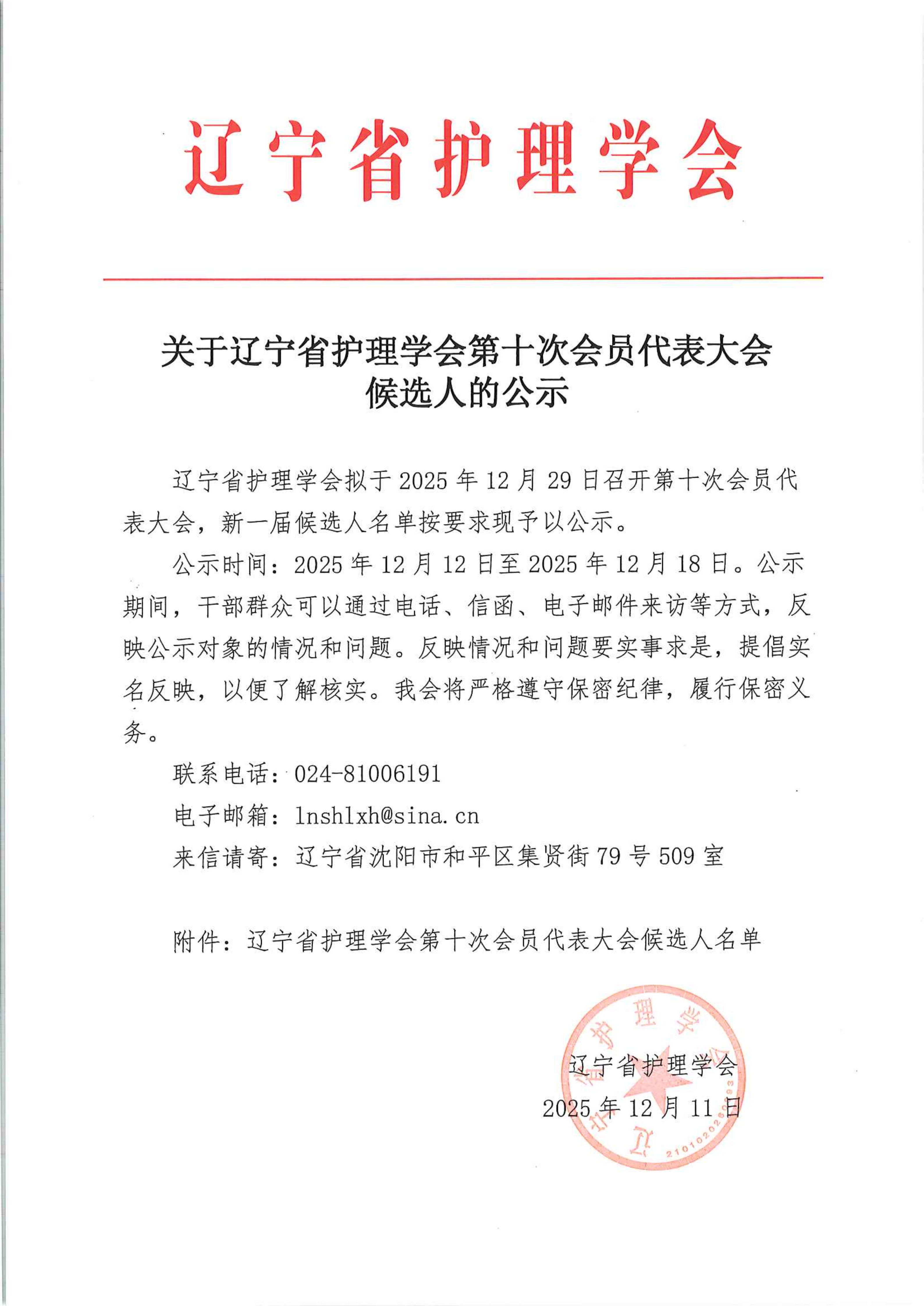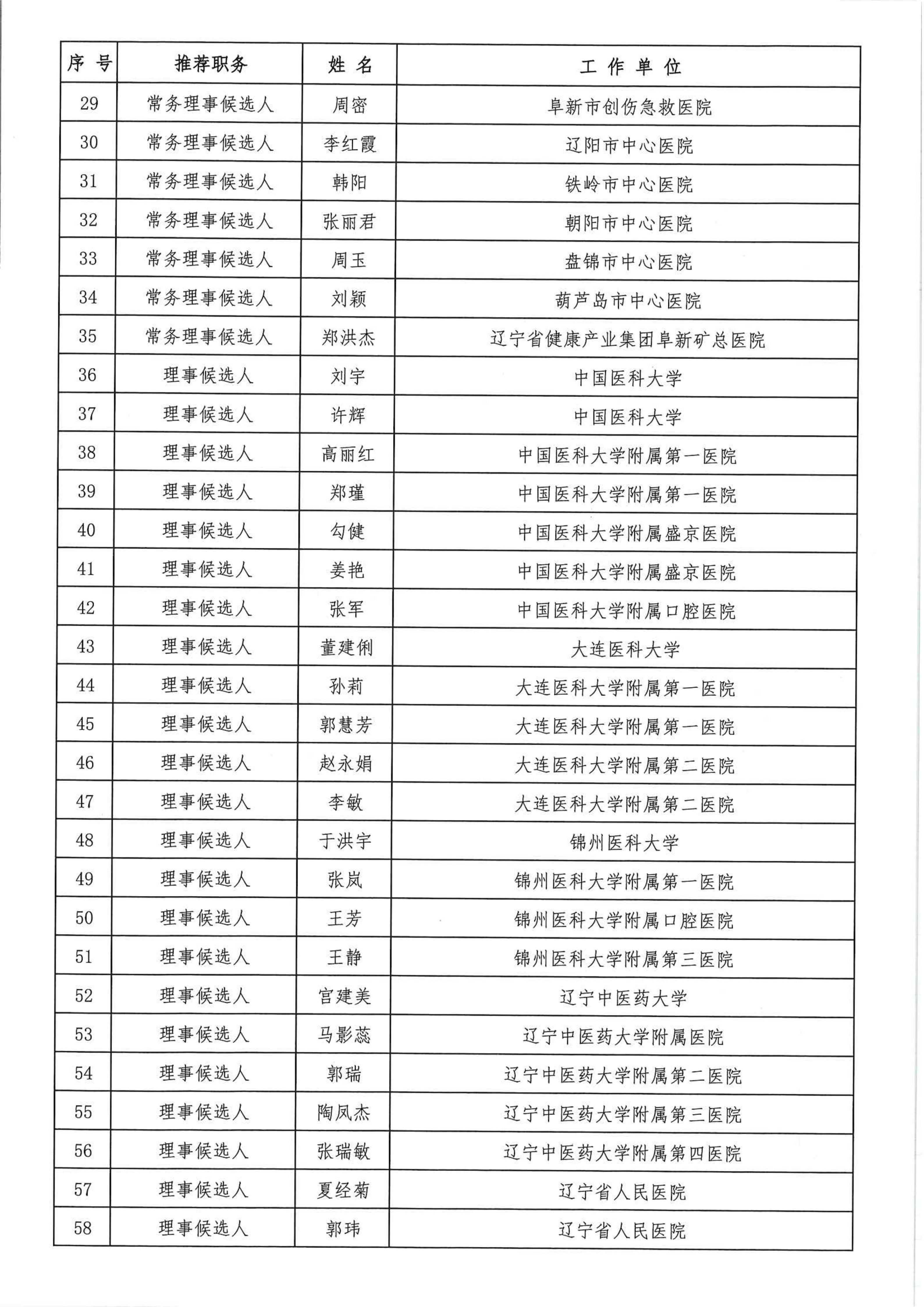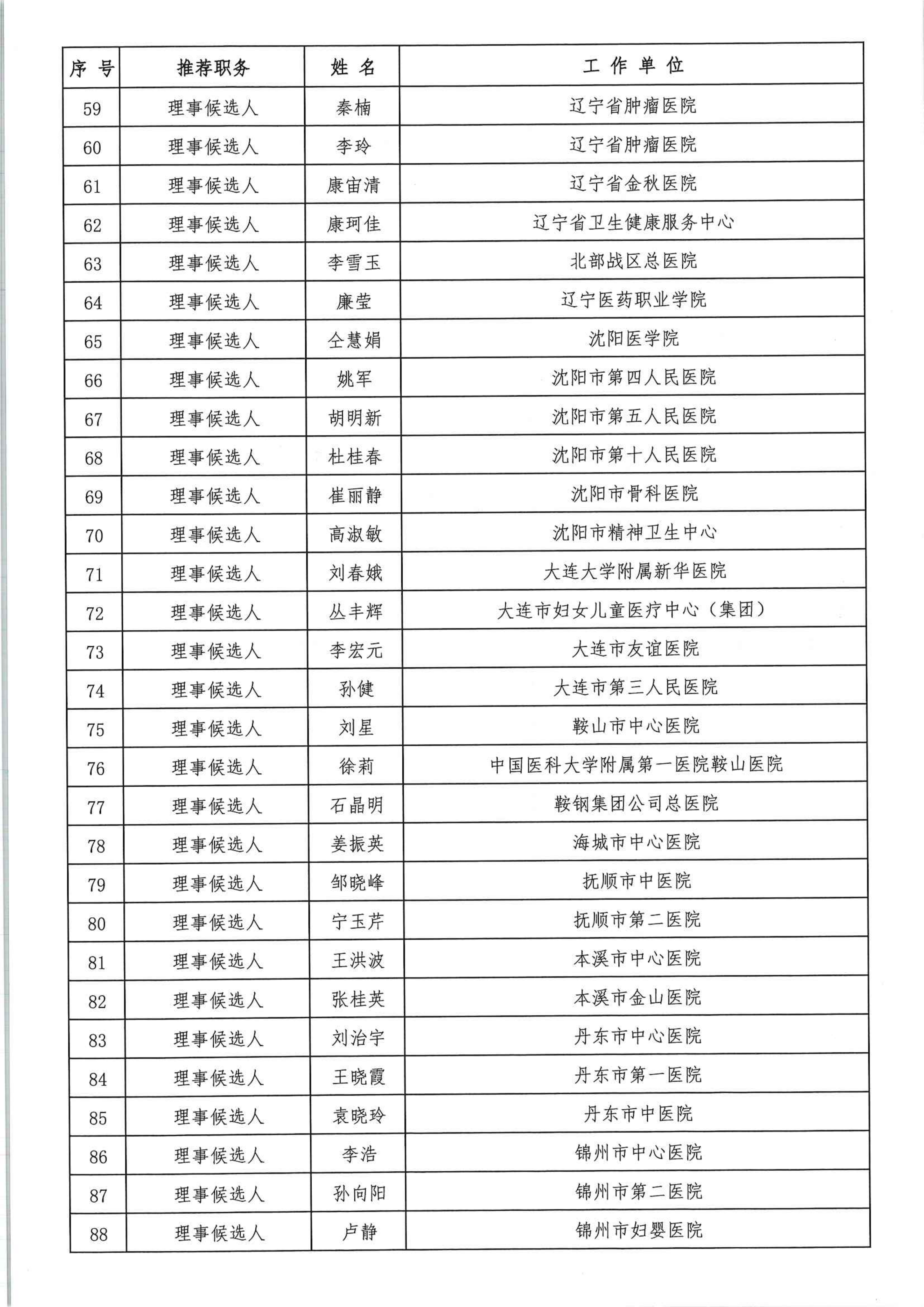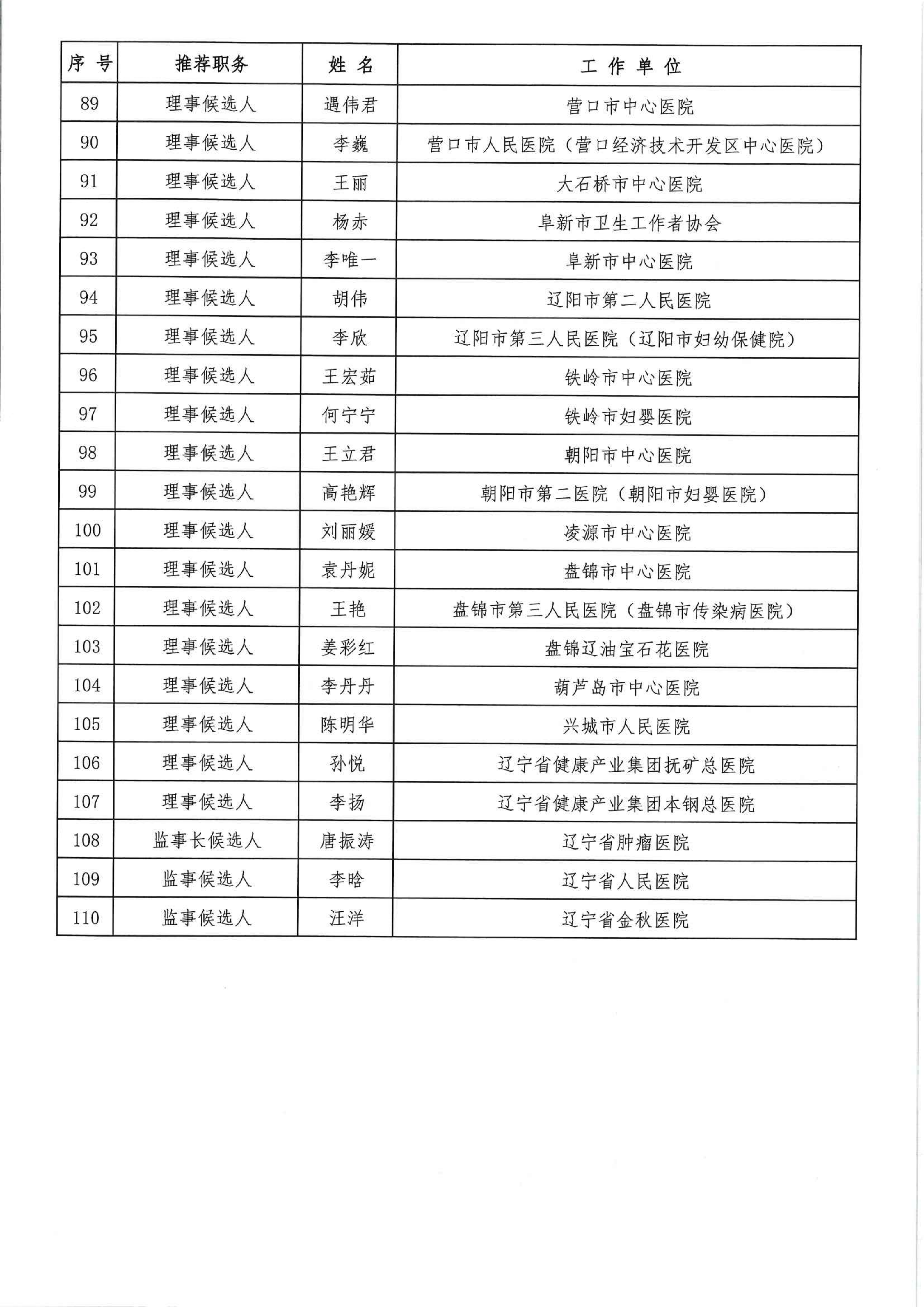 关于辽宁省护理学会第十次会员代表大会候选人的公示