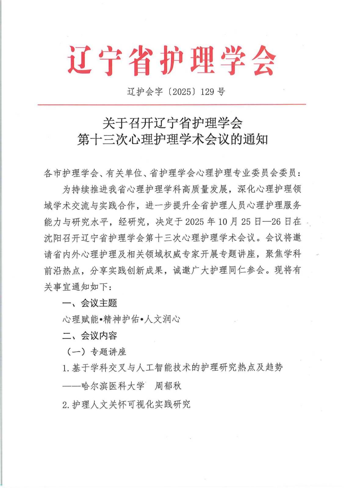关于召开辽宁省护理学会第十三次心理护理学术会议的通知